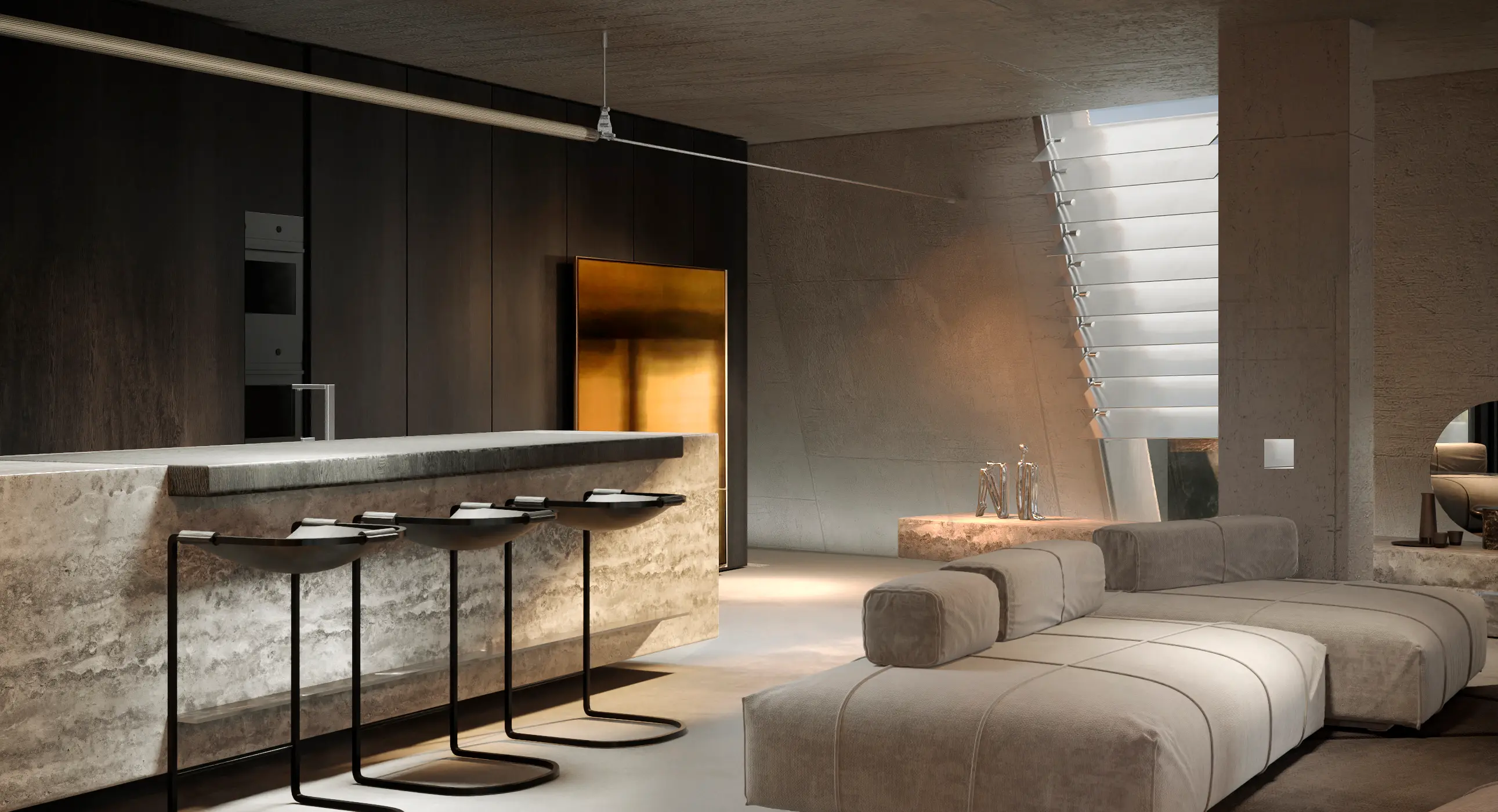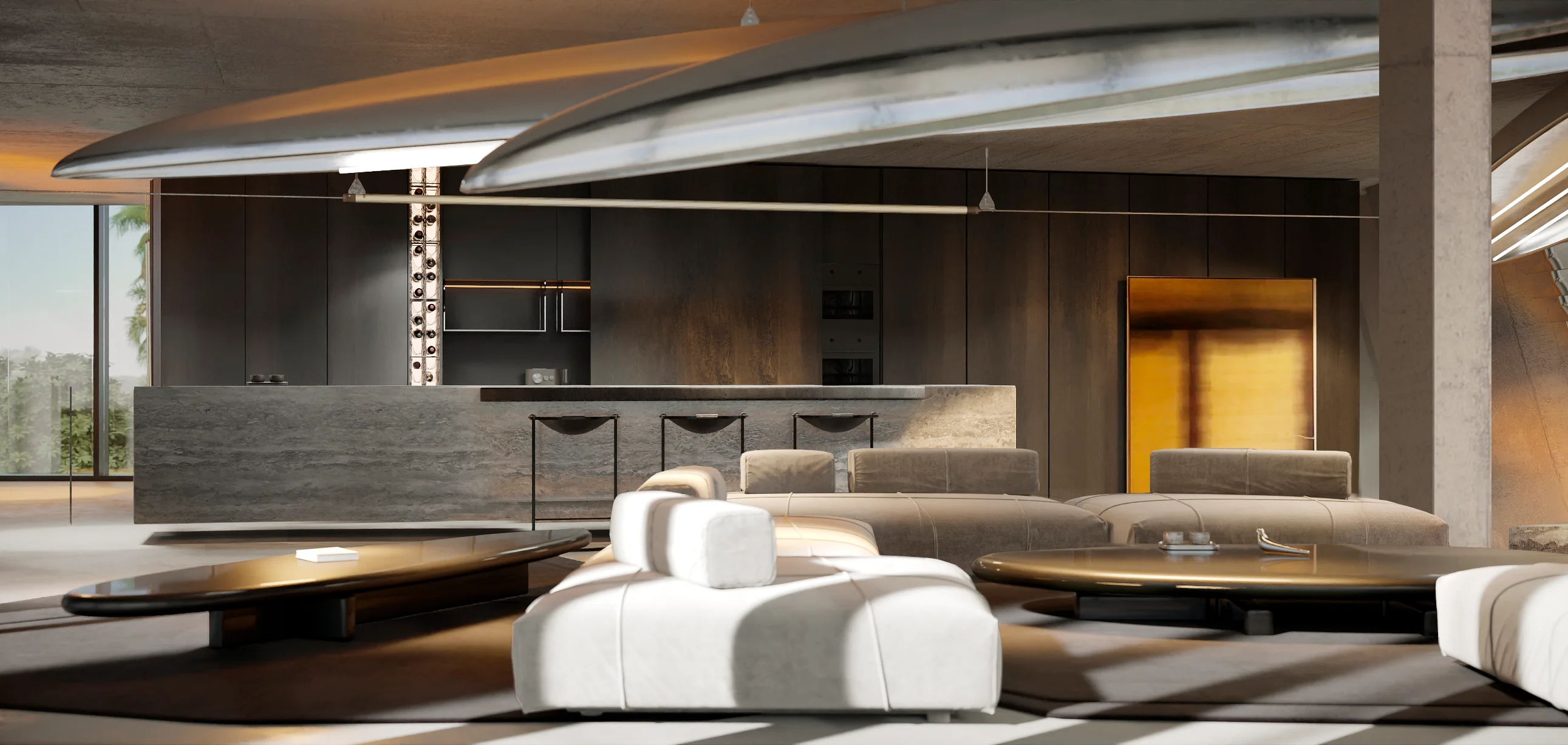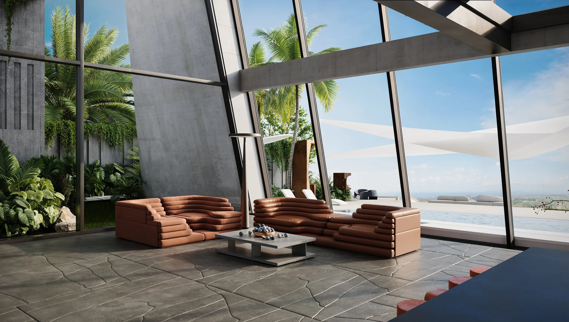 Skyfall is about freedom — the freedom of movement, the freedom of flight. Perched at the very edge of the hill, the villa exists between two forces: earth and sky. This architectural concept offers an unparalleled panoramic view of nearly all of Bali from any point in the villa — the ocean, both coastlines, volcanoes, and, at night, a sea of lights from distant homes, fishing boats, and the stars above.